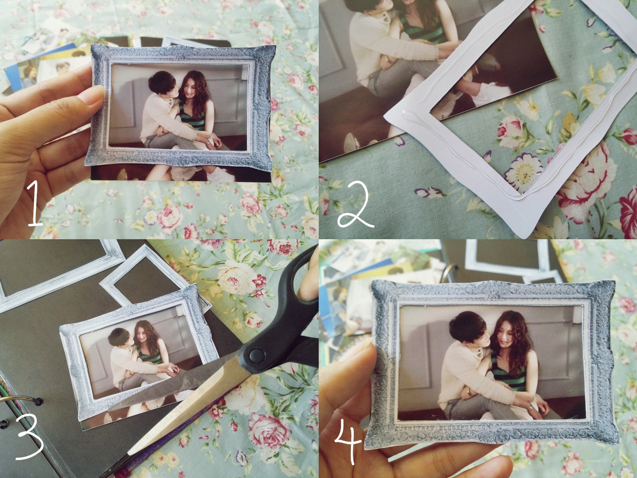 - Setelah diukur maka beri lem dibagian belakang bingkai foto. lalu tempel